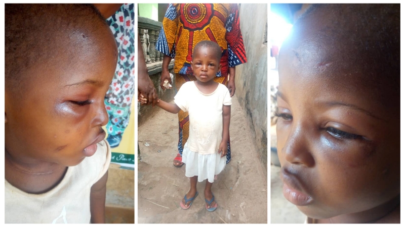 WITHIN NIGERIA learnt that the 3-year-old daughter was badly beaten up by her mother which resulted into bruises on her face and her eyes were swollen.